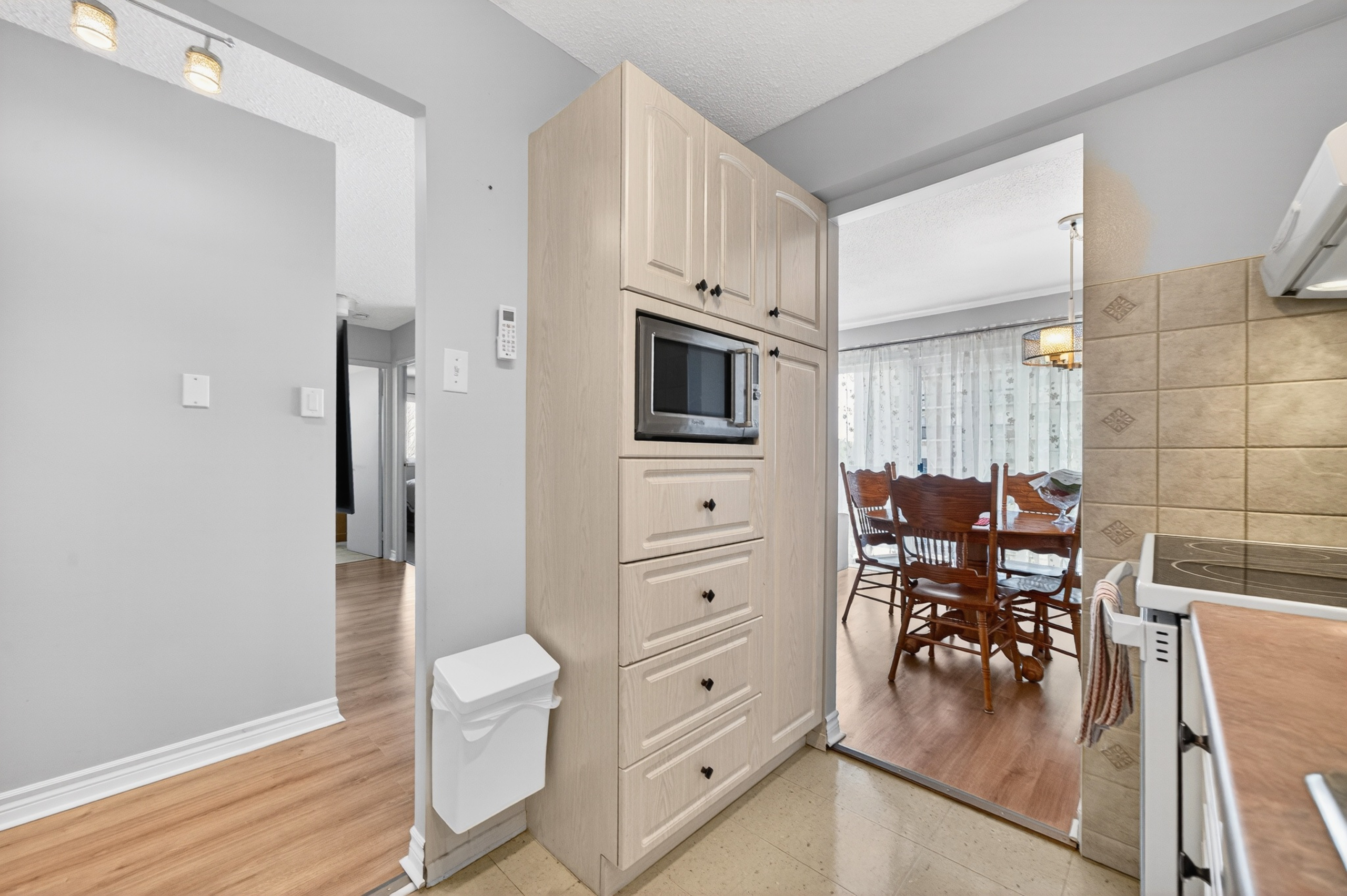 This bright corner unit offers an exceptional blend of comfort, light, and livable space in the heart of Chateau Vanier. Positioned to capture southern sunlight, the unit is framed by floor-to-ceiling windows in the living room that open onto a large balcony- an extension of your living space that invites quiet mornings, container gardens, or evenings under the stars. You can design your ideal private outdoor space!