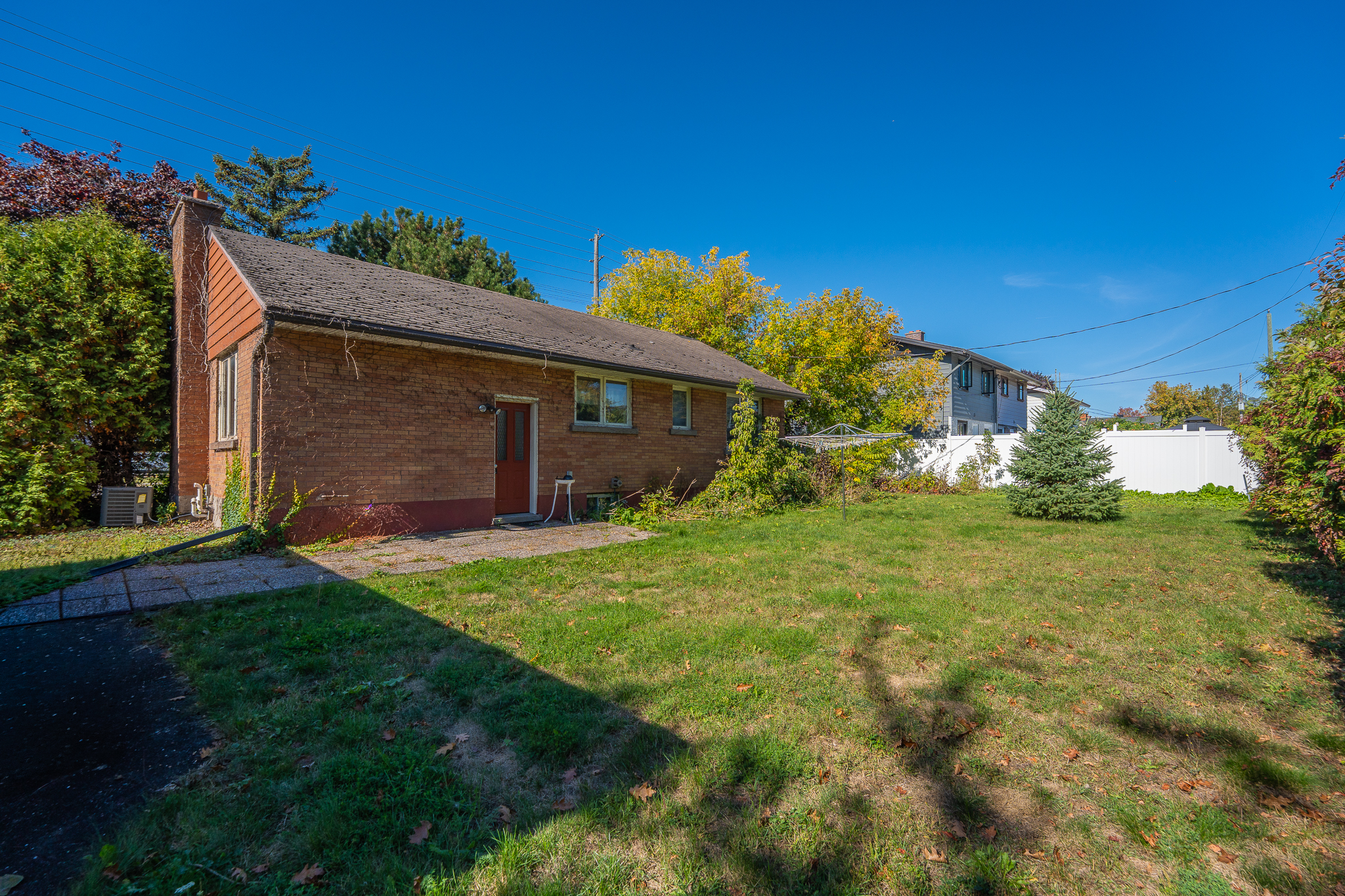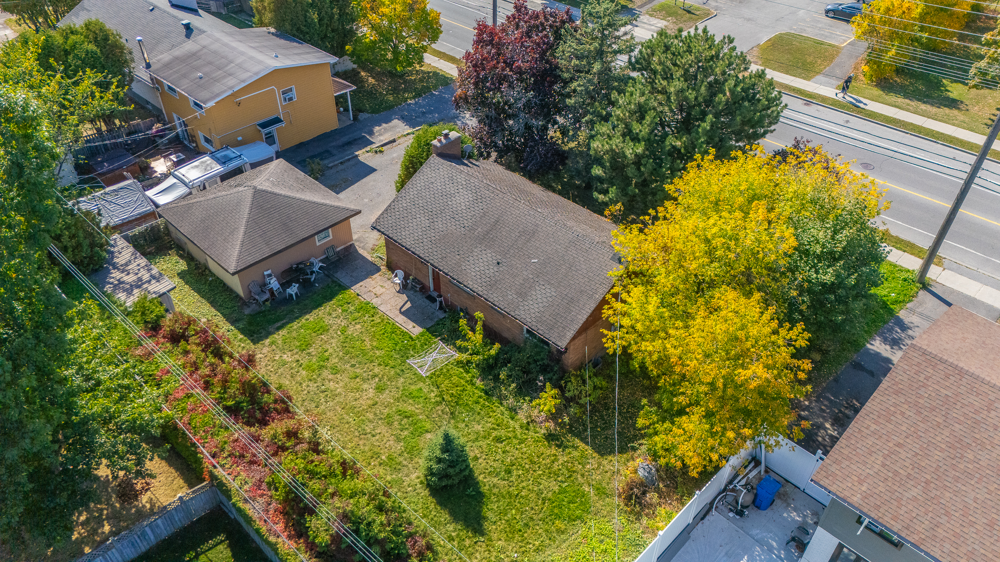 The existing bungalow offers a bright, spacious main-level layout with multiple sunlit bedrooms, a hallway and kitchen flowing seamlessly into an open living and dining area centered around a cozy wood fireplace. The kitchen opens to the backyard and provides access to the basement, offering versatility and potential for creative renovation or expansion.